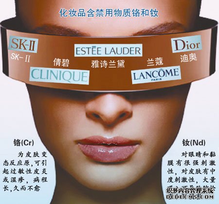 卫生部扮装品标准委员会委员、北京空军总病院皮肤科主任刘玮讲述记者,铬可引起过敏性皮炎或湿疹,且不好治愈;钕对眼睛和黏膜有很强的刺激,一旦大量吸入还可导致肺栓塞和肝侵害。根据我国《扮装品卫生标准》规定,扮装品汞的含量不能赶过1毫克/千克,铅的含量不能赶过40毫克/千克,砷则不能赶过10毫克/千克,铬和钕也属犯禁物质,但今朝还没有详细的含量要求。欧盟等有关国家的相干规定中,铬和钕也不属于扮装品列管项目。